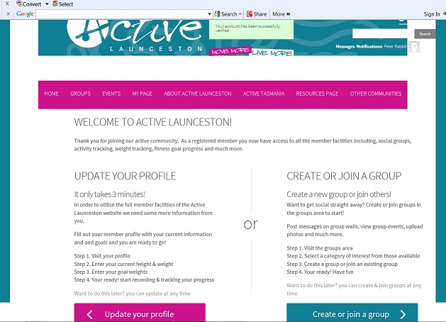 Step 1. Join up to the Active Launceston website by registering at the top right of the page
